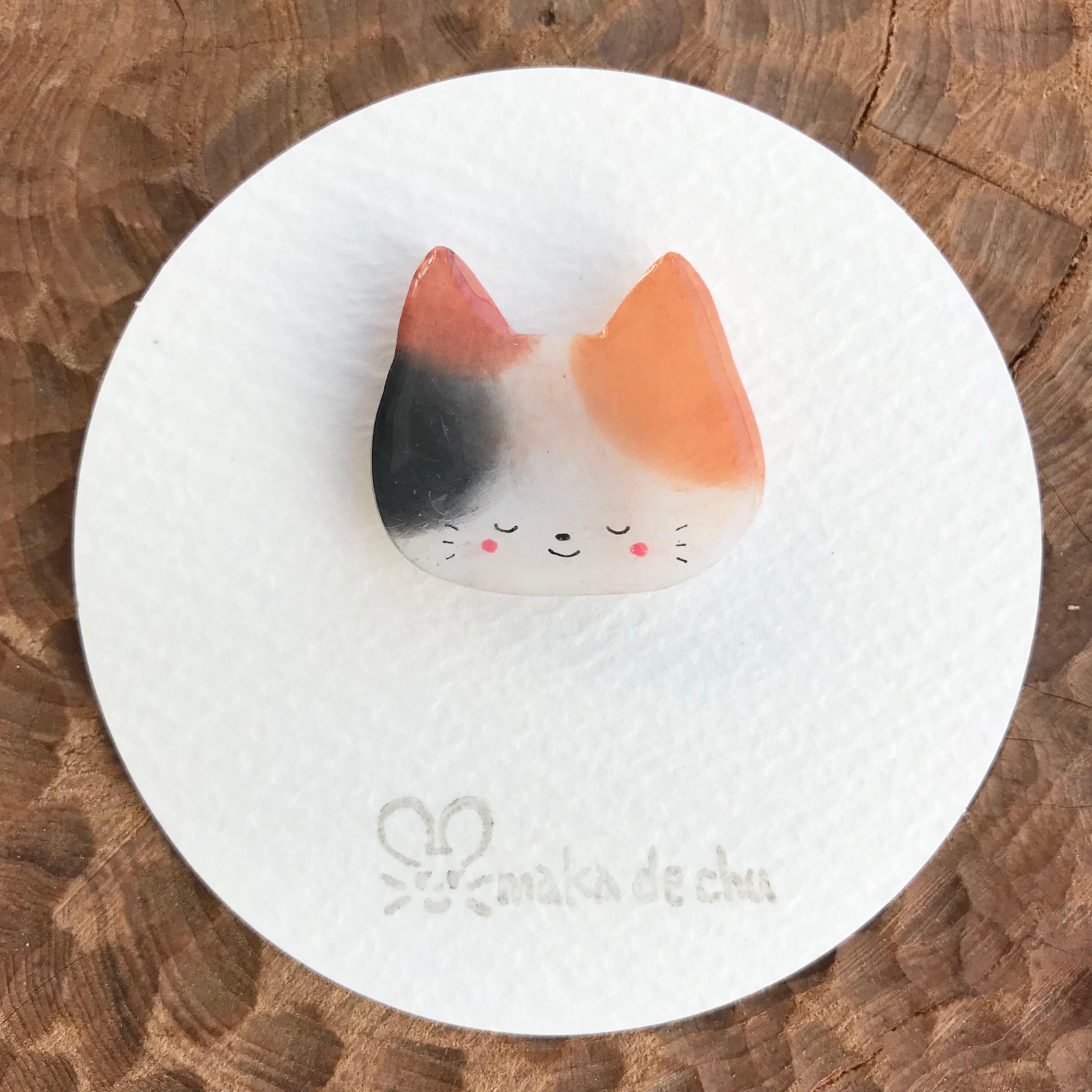 プラ板とレジンで作成したにゃんこのピンバッチです。