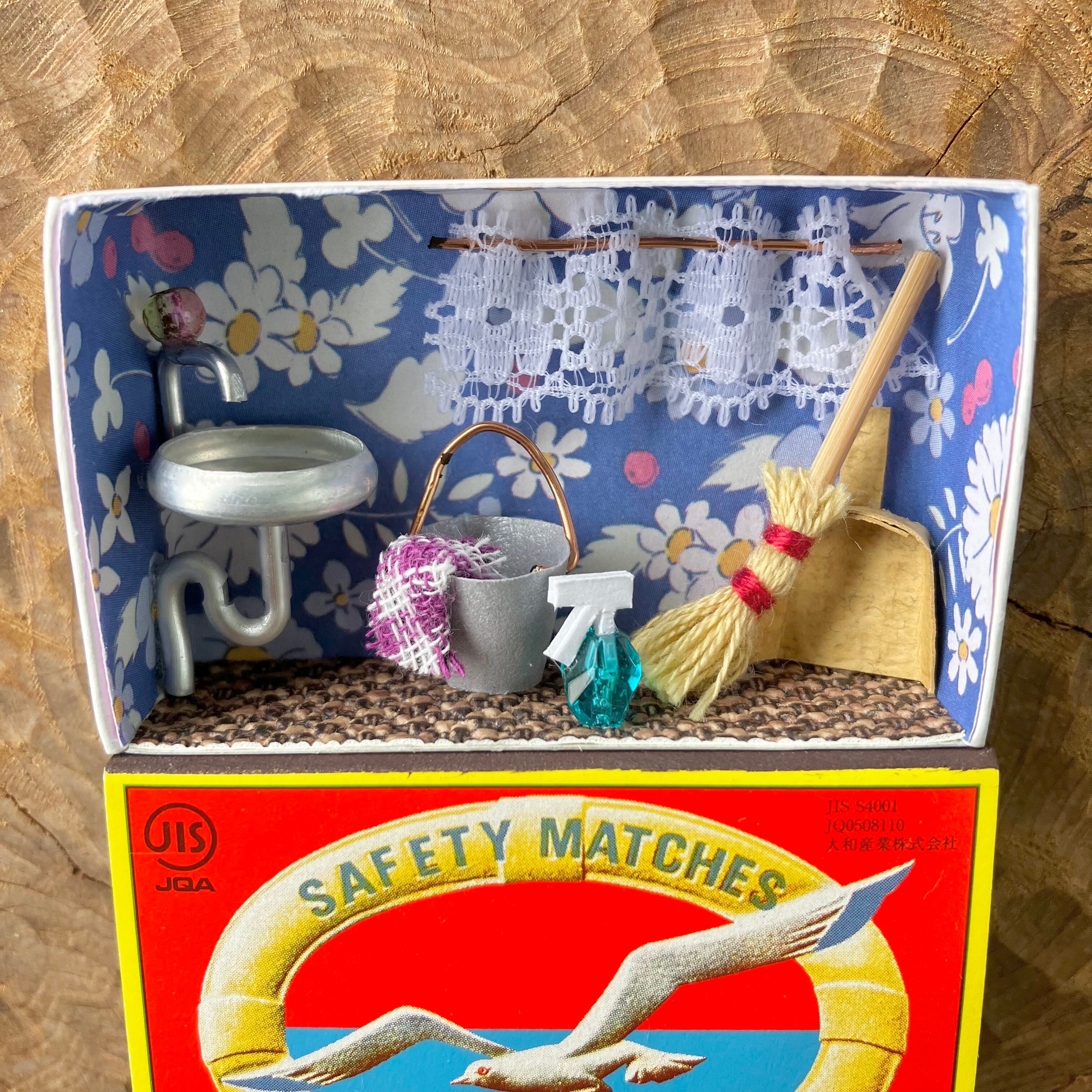 マッチの空き箱にミニチュアを詰め込んだ、ミニチュアアート作品です。