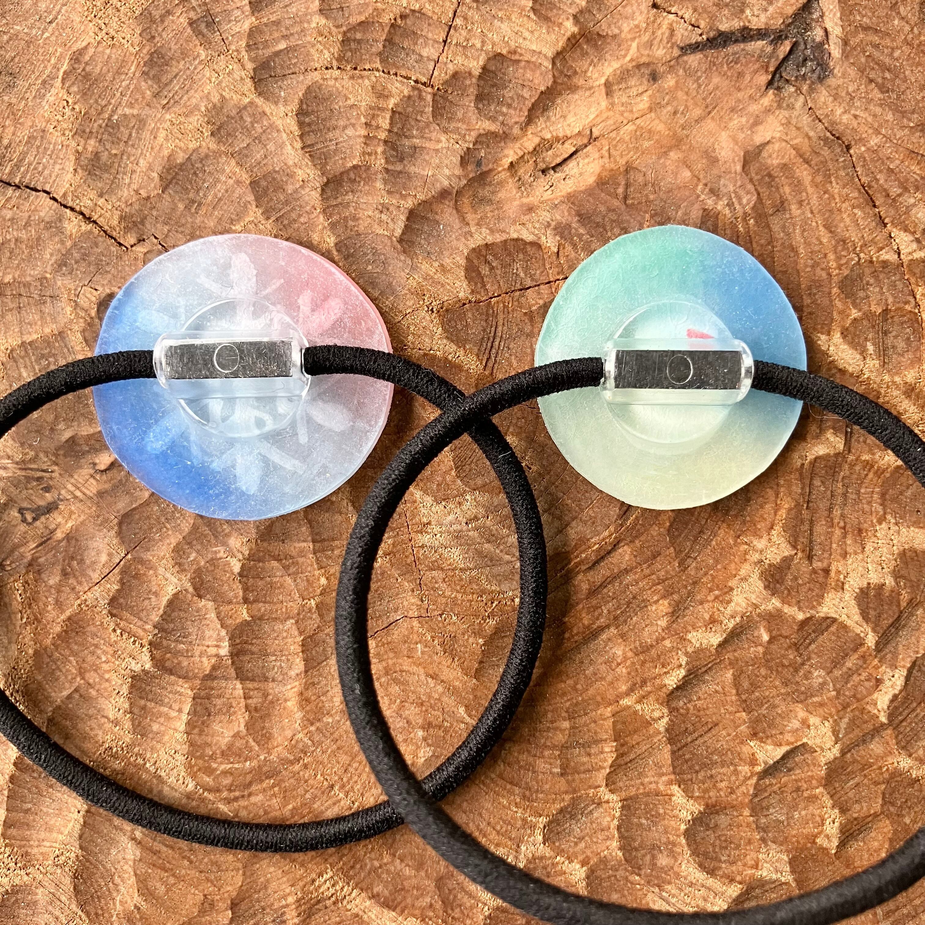 プラ板とレジンで作成した手描きのヘアゴムです。